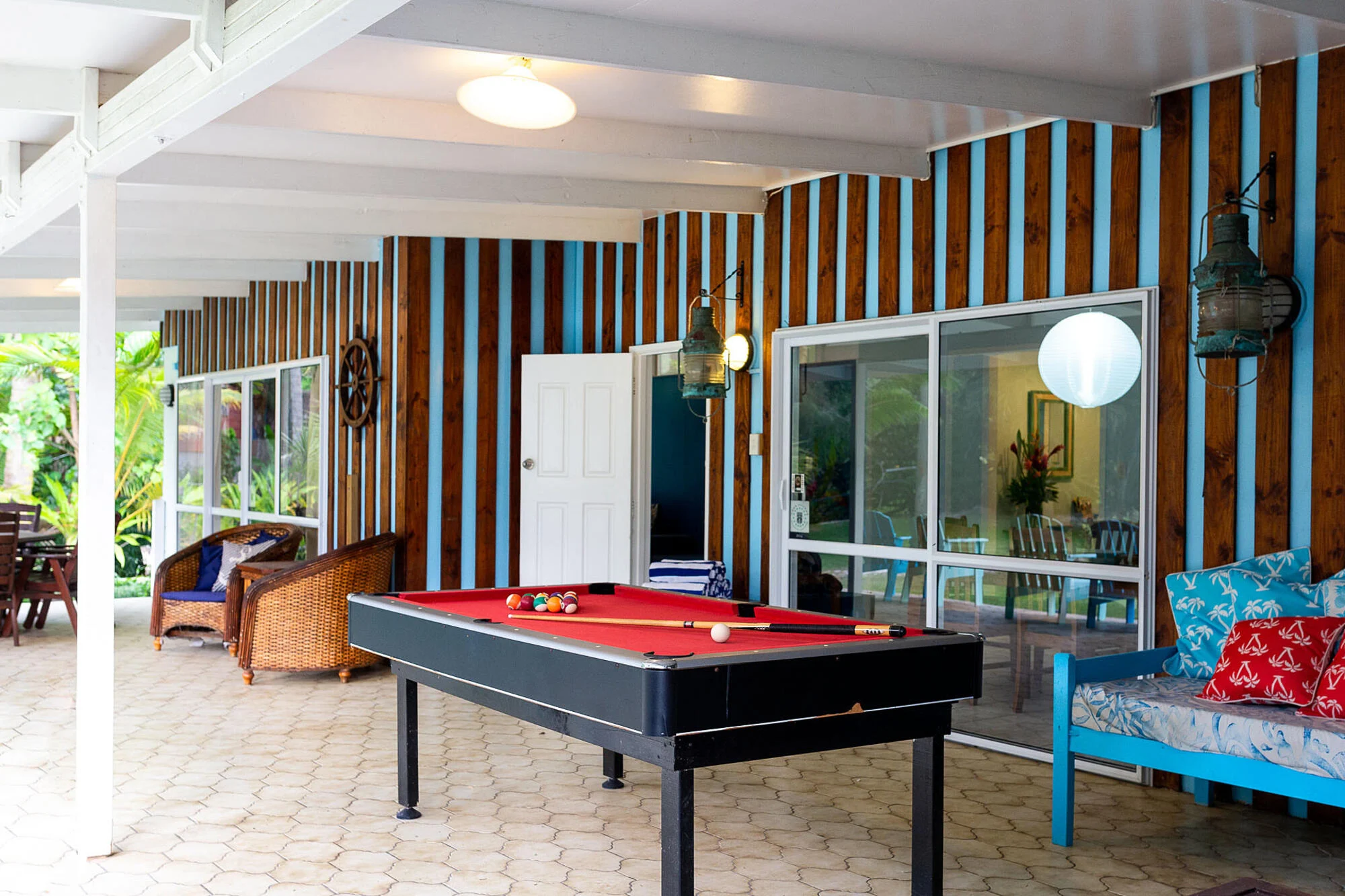Anchors Rest is a spacious 5-bedroom holiday home located in Arorangi, Rarotonga, providing a tranquil escape surrounded by half an acre of lawn and tropical gardens with stunning views of the beach and lagoon. The house features a seamless indoor/outdoor design, creating a great sense of space, with a large veranda perfect for enjoying evening BBQs, sunsets, and balmy weather. The property offers ample outdoor furniture, including a daybed, as well as entertainment options such as a pool table and table tennis.