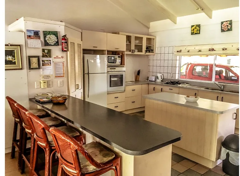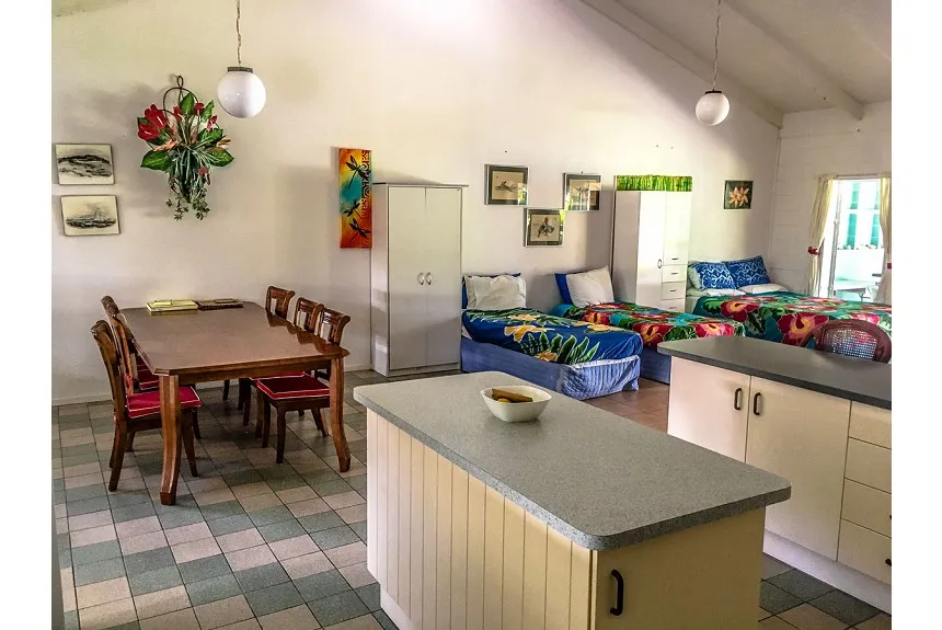Amenities at the Aro'a Beachfront House include a book library, paid WIFI access, beachfront location, BBQ facilities, shower, microwave, refrigerator, ironing board, laundry facilities, on-site parking, TV, and toaster. The property is fully screened, well-vented, and fan-cooled, ensuring guests' comfort throughout their stay. Additionally, the house is a Vodafone Wifi hotspot.