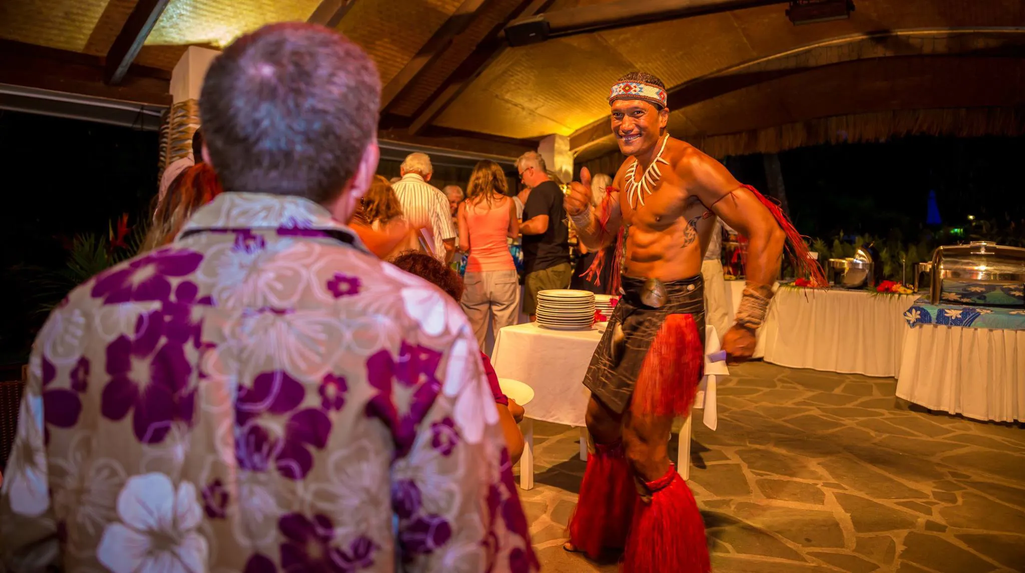 The evening begins with the opportunity to enjoy a cocktail, wine, or beer while listening to live music from the Te Aito Stringband. Guests are then invited to indulge in a buffet dinner consisting of island-inspired cuisine, followed by a delectable selection of tropical desserts. As the sun sets over the sparkling Aitutaki lagoon, the excitement builds for the traditional Fire and Dance Show.