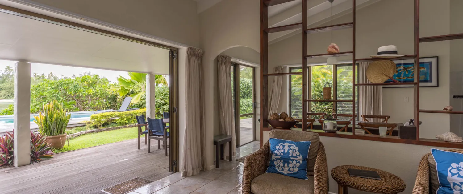 The property's contemporary Pacific design perfectly complements its beachfront location, making it an ideal setting for a special holiday getaway with family and friends. The villa features three double bedrooms, with two offering direct access to the beach and breathtaking views of the crystal-clear lagoon.