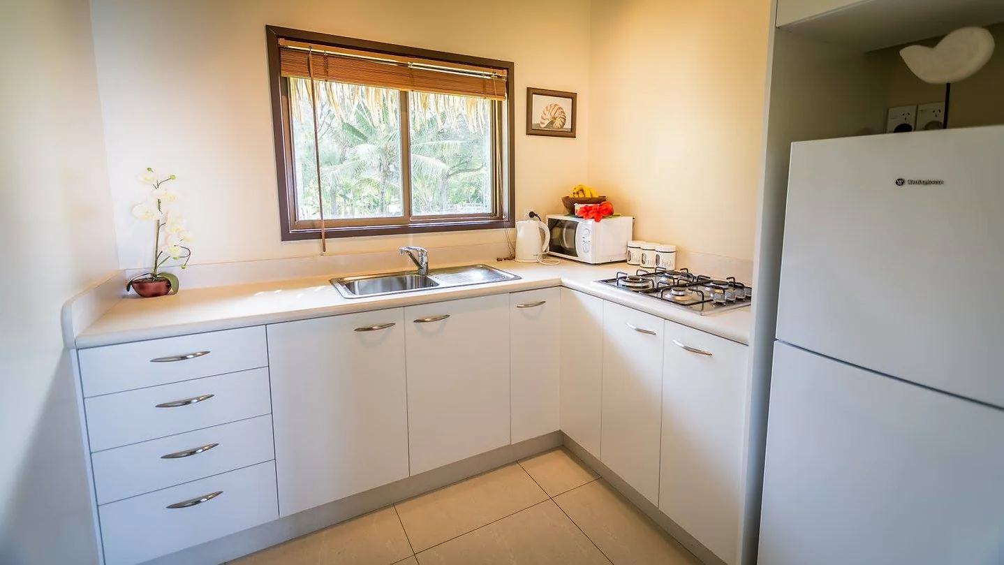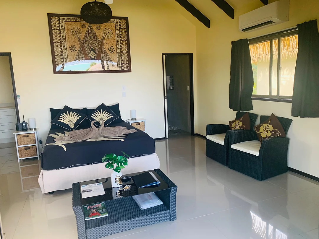 The hotel consists of six fully self-contained studio villas, each measuring 55 square meters. The villas are equipped with modern amenities such as a kitchenette, bathroom, and an open-plan bedroom that offers mesmerizing sunrise views and spectacular vistas of Muri lagoon, the only lagoon on Rarotonga surrounded by mini isles.