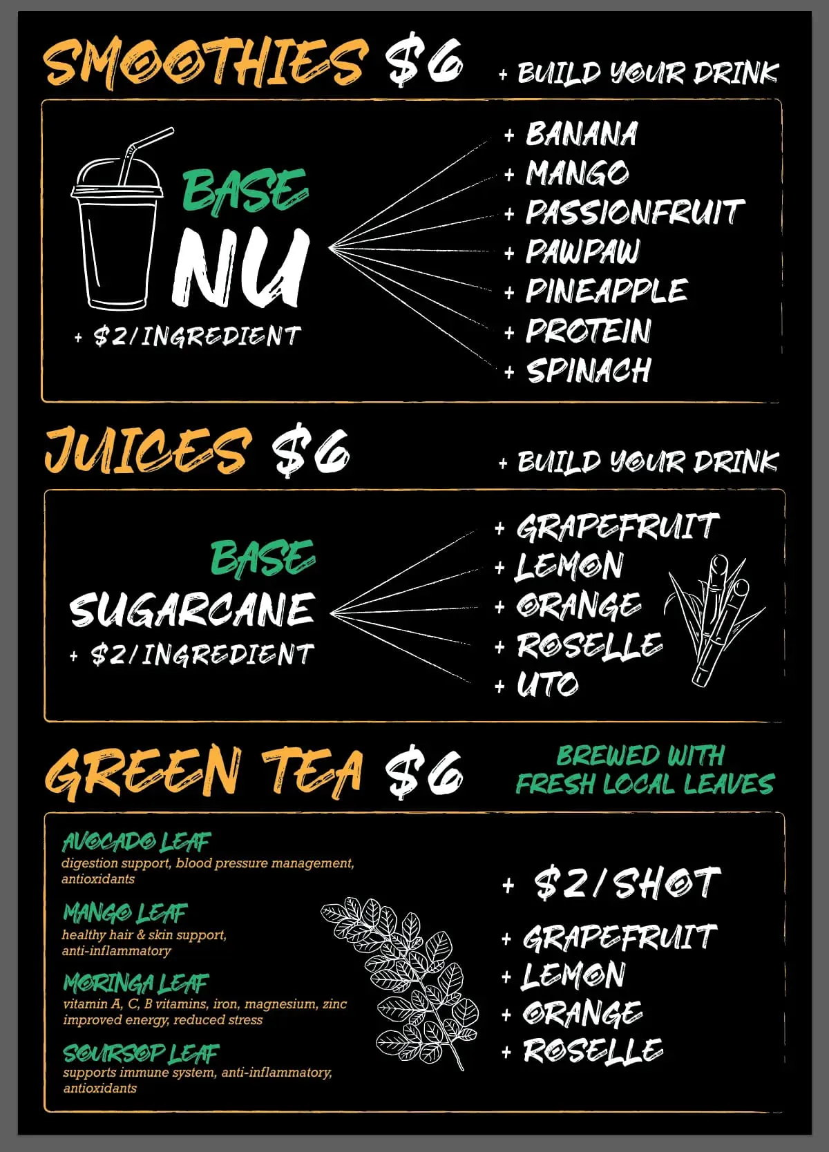 - Additional outlets: Juice bars in Muri and Tupapa.