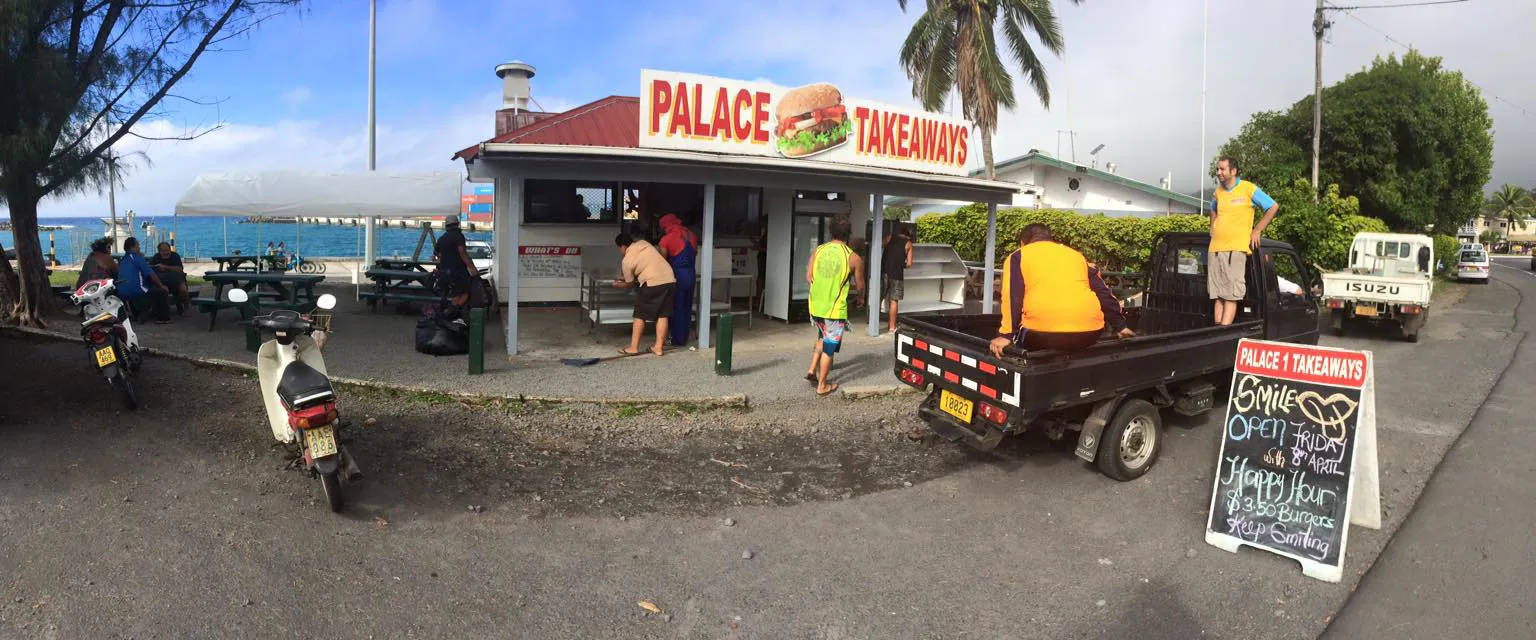 Palace Takeaways is a popular eatery located in Avarua, Rarotonga, offering American cuisine for both lunch and dinner. Customers rave about the excellent value for money, particularly emphasizing the $3.50 happy hour burgers as a standout. The burgers are described as divine, fresh, and filling, making them a top choice for visitors.