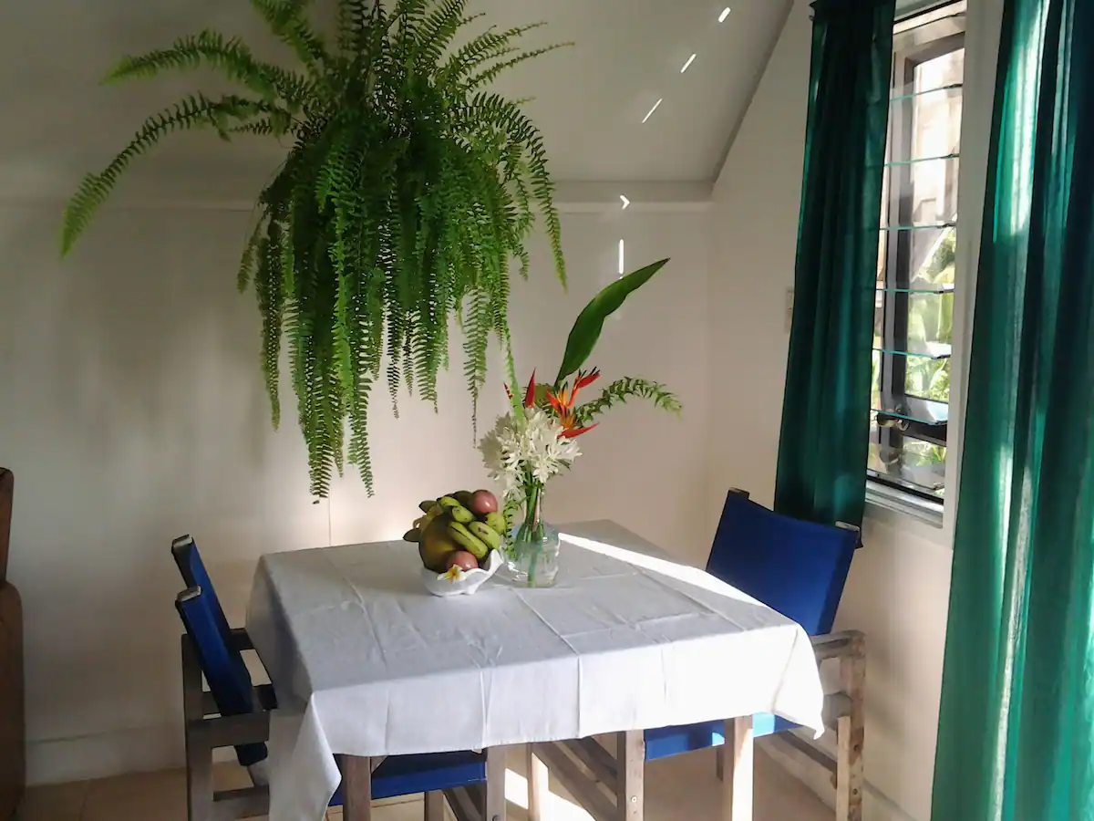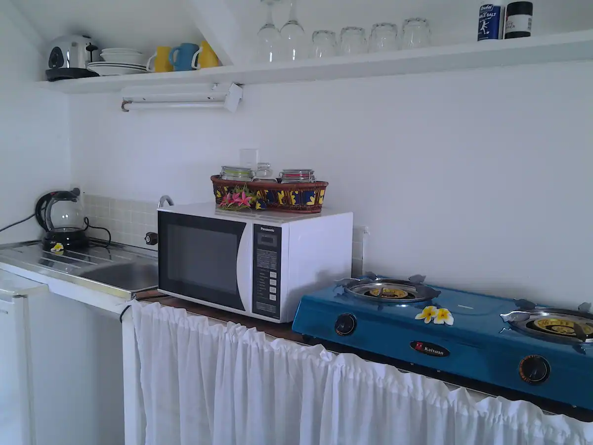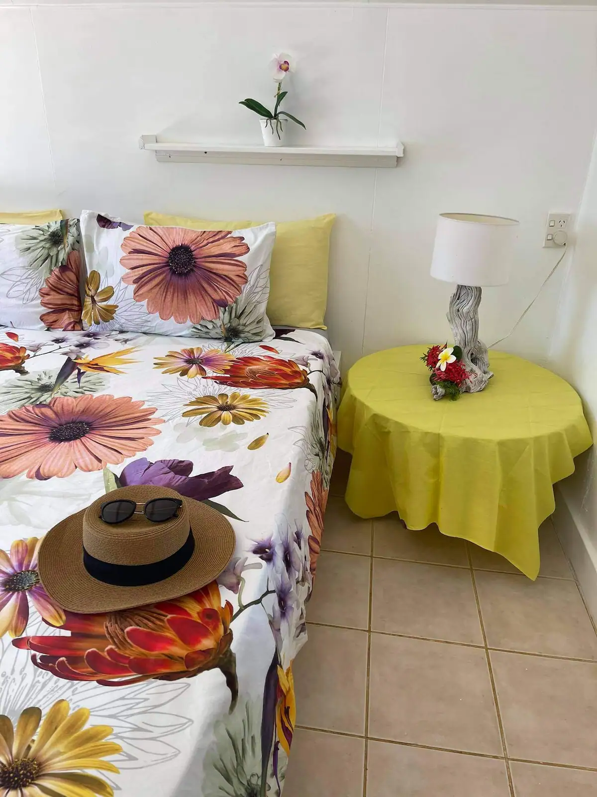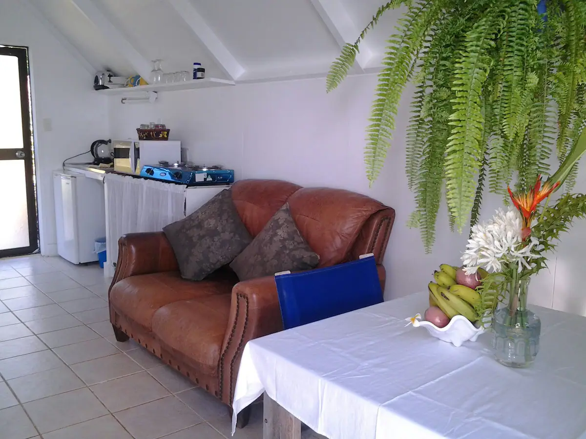 Peaceful Bungalows is nestled within a 2-acre property and is enveloped by a charming hibiscus lined driveway, offering guests a warm and inviting welcome. The highlight of the bungalow is its balcony, which boasts breathtaking views of the sea, providing an ideal spot for relaxation and unwinding amidst the natural beauty of the surroundings. The self-contained kitchen ensures guests have the convenience of preparing their own meals, and the solar heating provides a sustainable and environmentally friendly amenity for guests.
