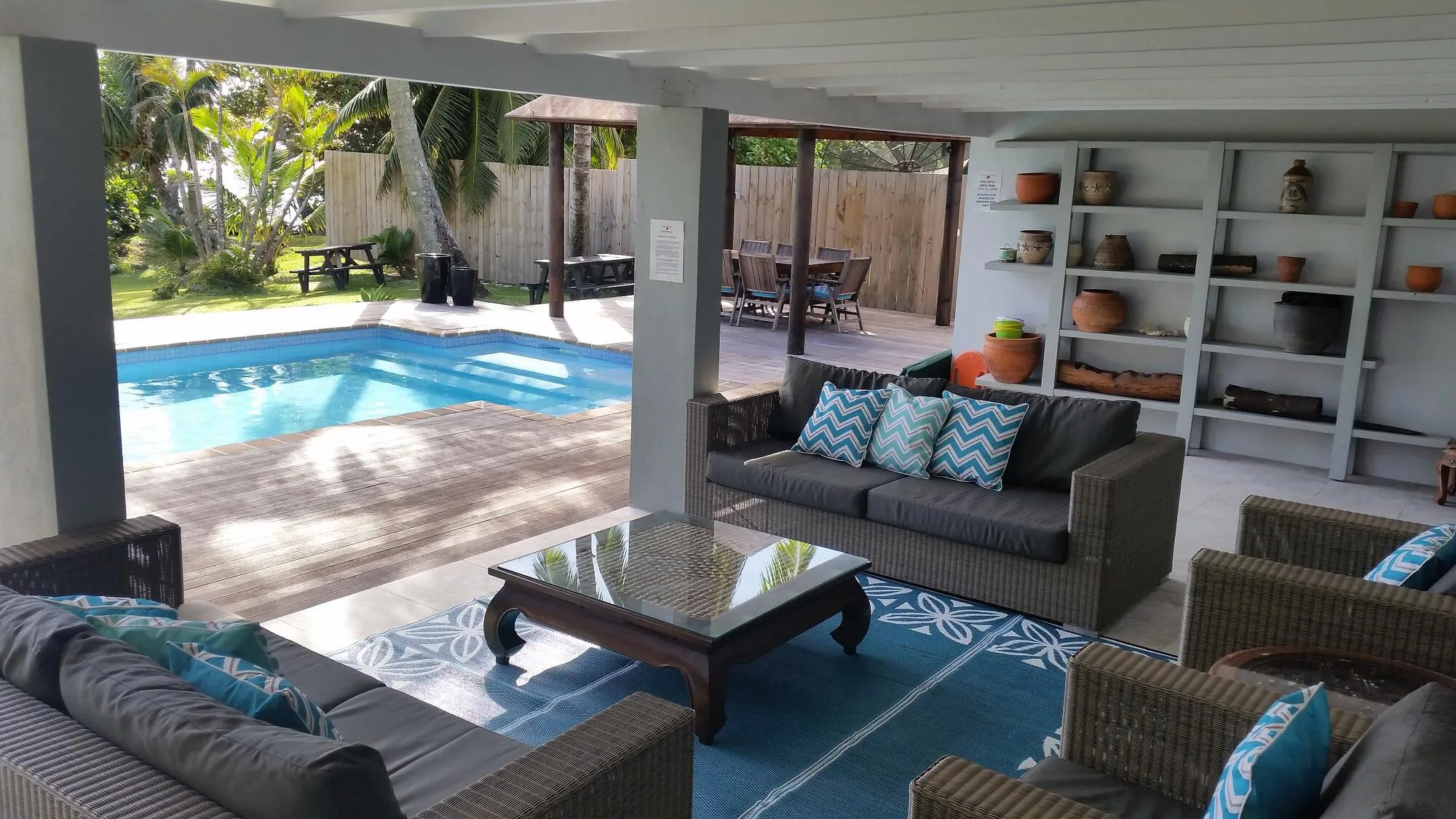 The village of Arorangi, where the property is situated, offers a tranquil and sheltered environment from the trade winds, creating an ideal setting for a peaceful and relaxing holiday experience. The property's absolute beachfront location, alongside its sun-drenched swimming pool and deck area, provides an idyllic backdrop for guests to unwind and soak in the island's natural beauty.