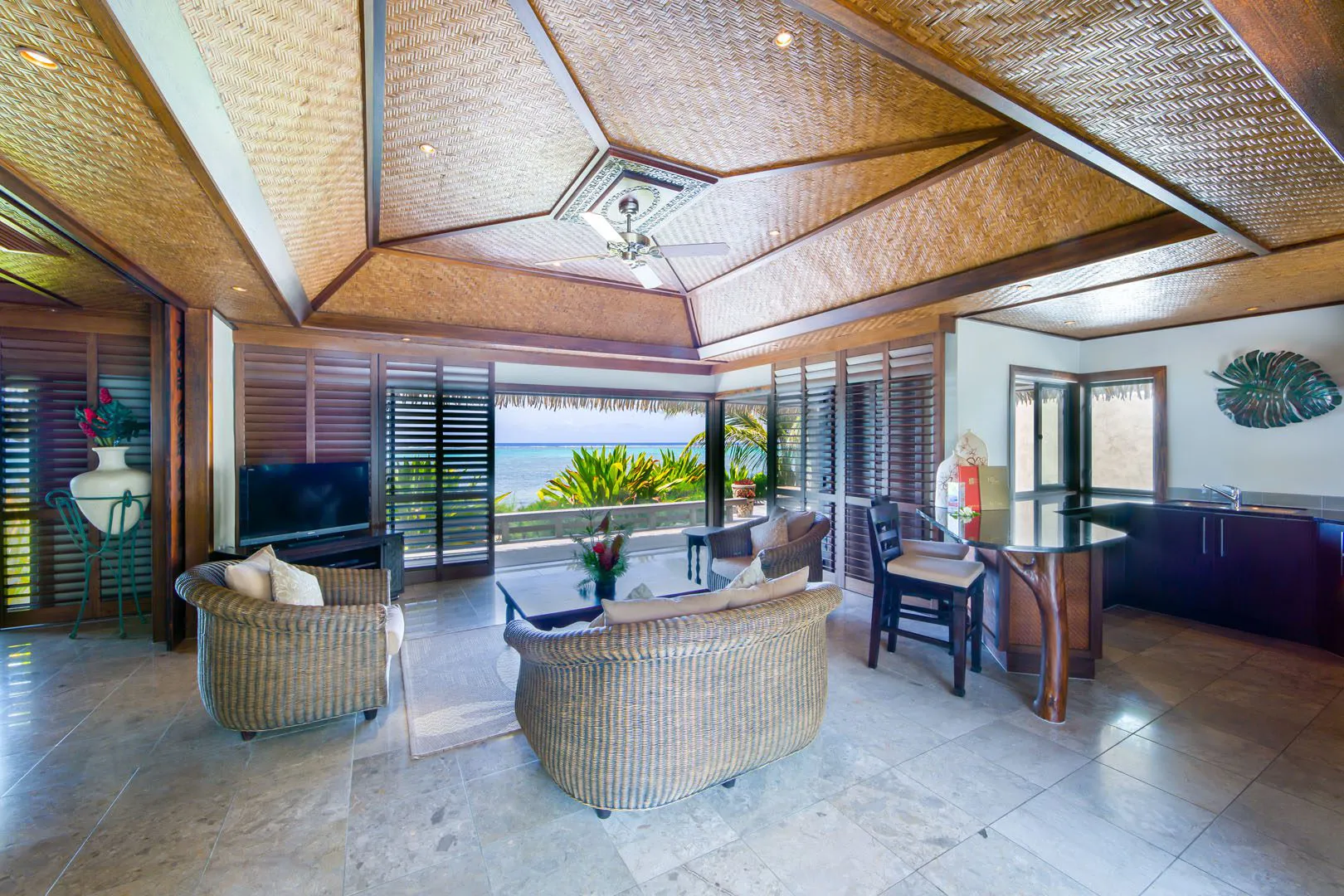 Guests at Te Manava also have access to Pacific Resort Rarotonga's amenities, including a large public pool, beach hut activities, and chargeback facilities at Sandals Restaurant and the Barefoot Bar. Additionally, there is a complimentary kids club, Te Manava Spa offering relaxing therapies, and free use of kayaks, beach towels, and sun loungers. The resort provides a grocery delivery service, and guests can enjoy free pick-up and drop-off to Pacific Resort Rarotonga.